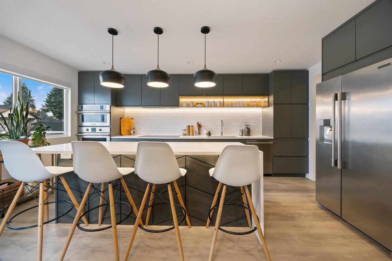 Completely renovated in 2020, top to bottom! Down to the studs and renovated on 2 levels. Features 3 bedrooms up and a 3-bedroom ground-level suite—perfect for in-laws or extended family. Includes 3 full bathrooms, 2 stunning kitchens, and 2 laundries. Quality updates throughout: modern bathrooms, laminate flooring, updated plumbing and electrical, exterior and interior paint, spray foam insulation, and soundproofing between floors. Fully permitted with separate heating systems (forced air up, electric in-floor down), 200-amp service with surge protector, 100-amp sub panel up, and 50-amp exterior. Roof (2020). Networking cables (Cat 6) installed. Centrally located near The Amazing Brentwood, Metrotown Shopping, BCIT, SFU, and easy access to Hwy 7 & Hwy 1.
