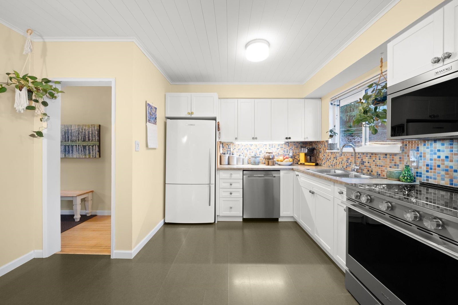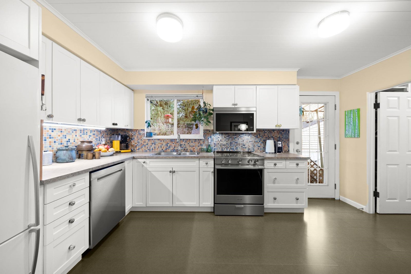 Immaculately maintained and updated 3-bedroom rancher in desirable Annieville, set on a prime 7,068 sq ft corner lot. Offering 1,447 sq ft of bright, functional living space, this home features a renovated kitchen with S.S. appliances, newer fireplace (2022), roof (2024), furnace and A/C (2022), plus windows and patio sliding door (2006~). A rare bonus living area within the garage includes its own full bathroom -ideal for guests or a home office. Beautifully landscaped grounds and a massive deck provide the perfect setting to enjoy Fraser River and city views. Conveniently located near parks, shops, restaurants along 120 Street, and quick access to Alex Fraser Bridge and Hwy 17. School catchments: Annieville Elementary & Delview Secondary.