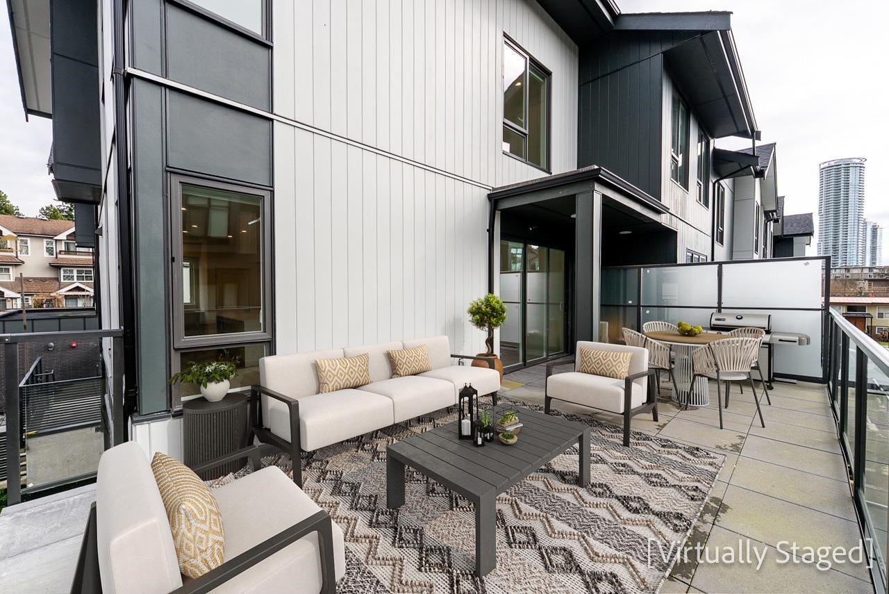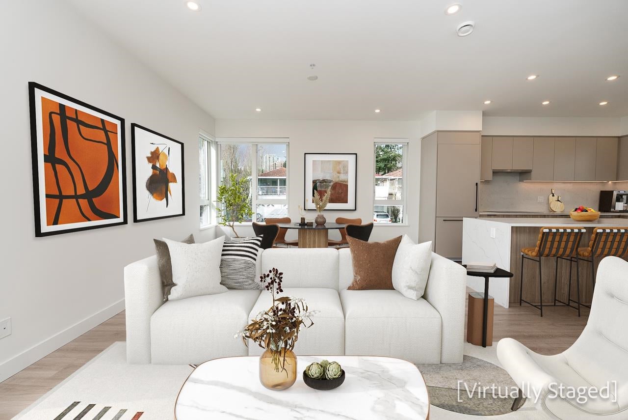 Boutique collection of move-in ready townhomes steps to Edmonds SkyTrain Station! Bright open-concept layouts with 9’ ceilings and expansive windows maximize natural light. Gourmet kitchens feature quartz countertops, waterfall islands, sleek cabinetry, matching backsplashes and integrated Italian appliances—perfect for entertaining or daily living. Premium finishes include roller blinds and pot lights throughout, option to add air-conditioning. Walk to Stride Avenue Ravine Park, Poplar Park & Ernie Winch Park with tennis courts. Minutes to Edmonds Community Centre, Rosemary Brown Rec Centre, Highgate Village, plus shops, dining & transit along Kingsway. School Catchments: Taylor Park Elementary & Byrne Creek Secondary.